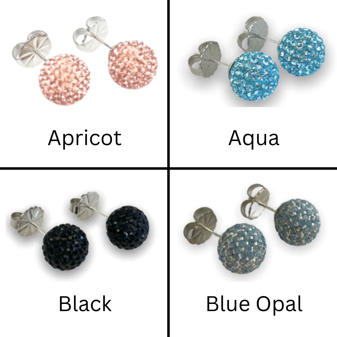 Add a touch of sophistication with our 12mm Shimmer Studs, featuring 100% waterproof epoxy/clay pave beads with Swarovski crystals on .925 sterling silver posts. Elevate your look with these exclusive and elegant studs.