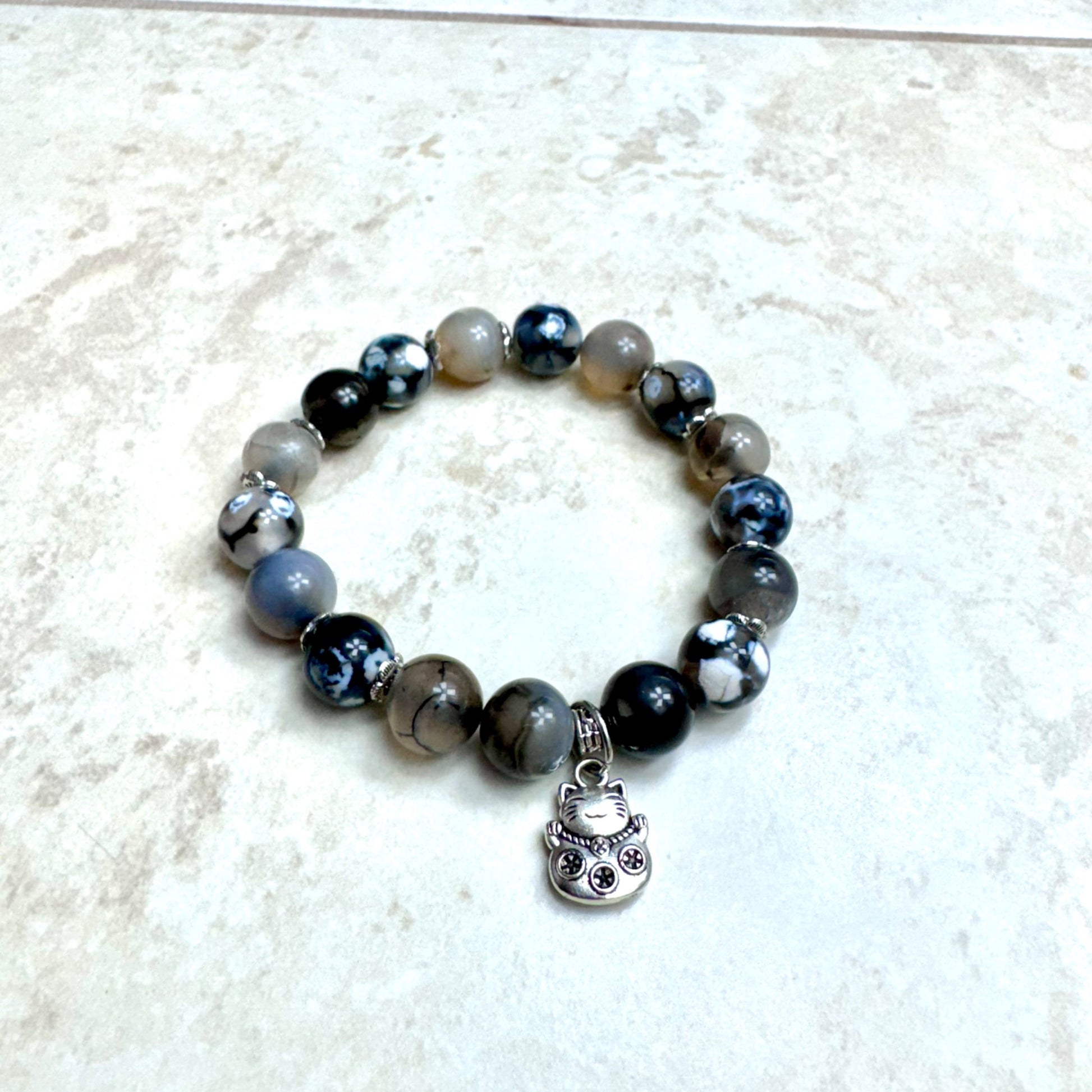 6.25" Fire Agate Bracelet w/ Lucky Kitty Charm