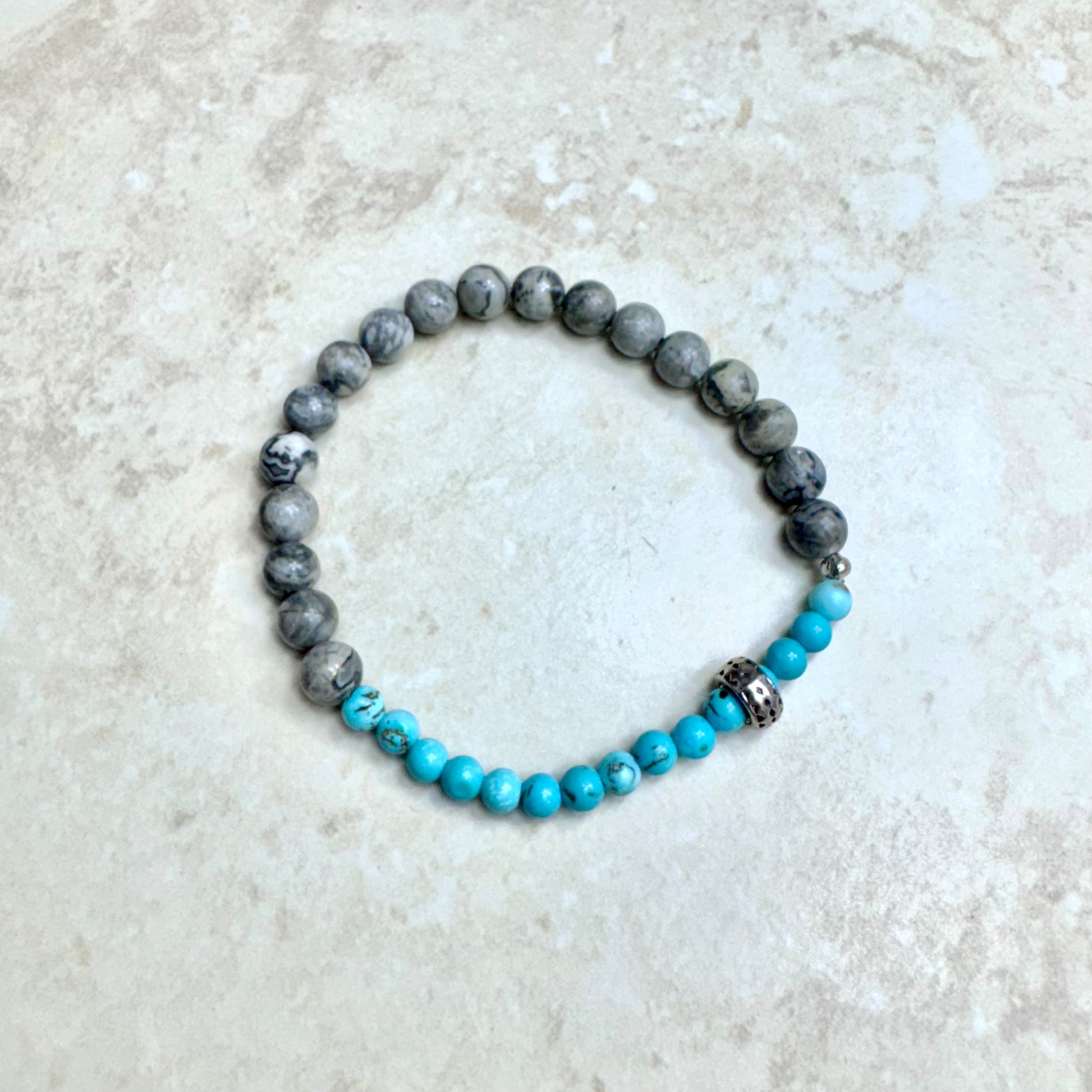 6.5" Jasper & Turquoise Bracelet w/ floating Rondelle