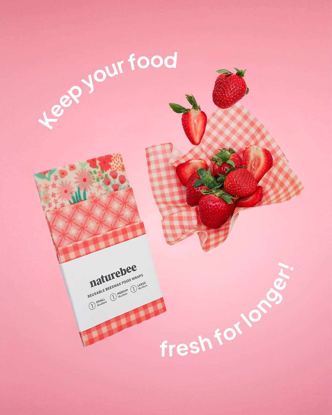 - 1 small beeswax wrap → 20 x 20 cm, great for small snacks like berries, crackers or oranges