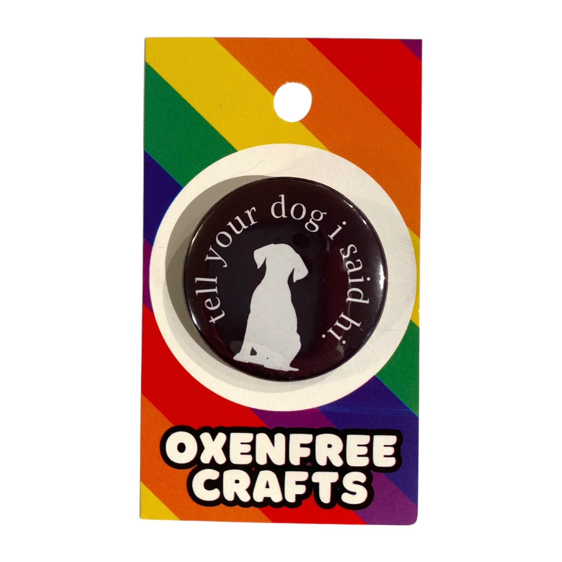 1.5" button pins handmade in Saskatoon by Oxenfree Crafts.