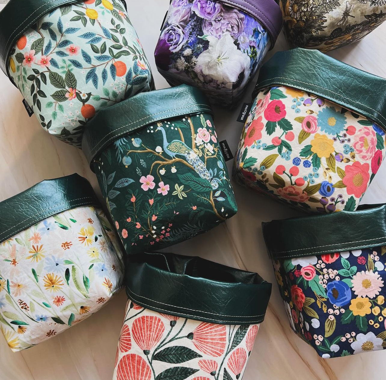 Our Catch All Bags are perfect for a cute garbage in your car, make up brushes or toiletries in the bathroom or throwing your keys in! They are all lined with a vinyl to make it easy for cleaning!