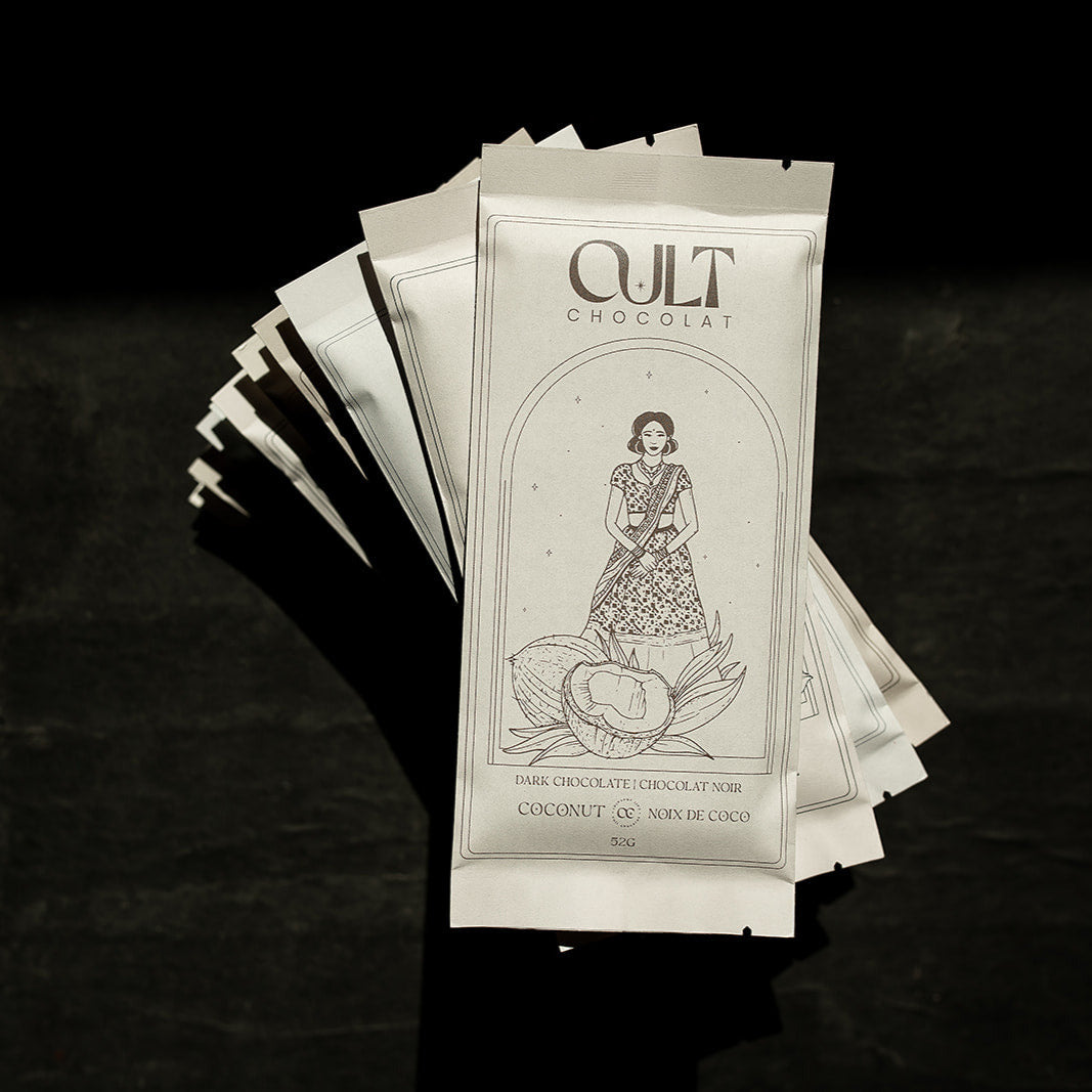 Born in a realm with palm trees aplenty, Goddess Sridevi brings together dark chocolate and her favorite ingredient, coconut, to create a chocolate bar that’s subtly fragrant, creamy, and so divine.