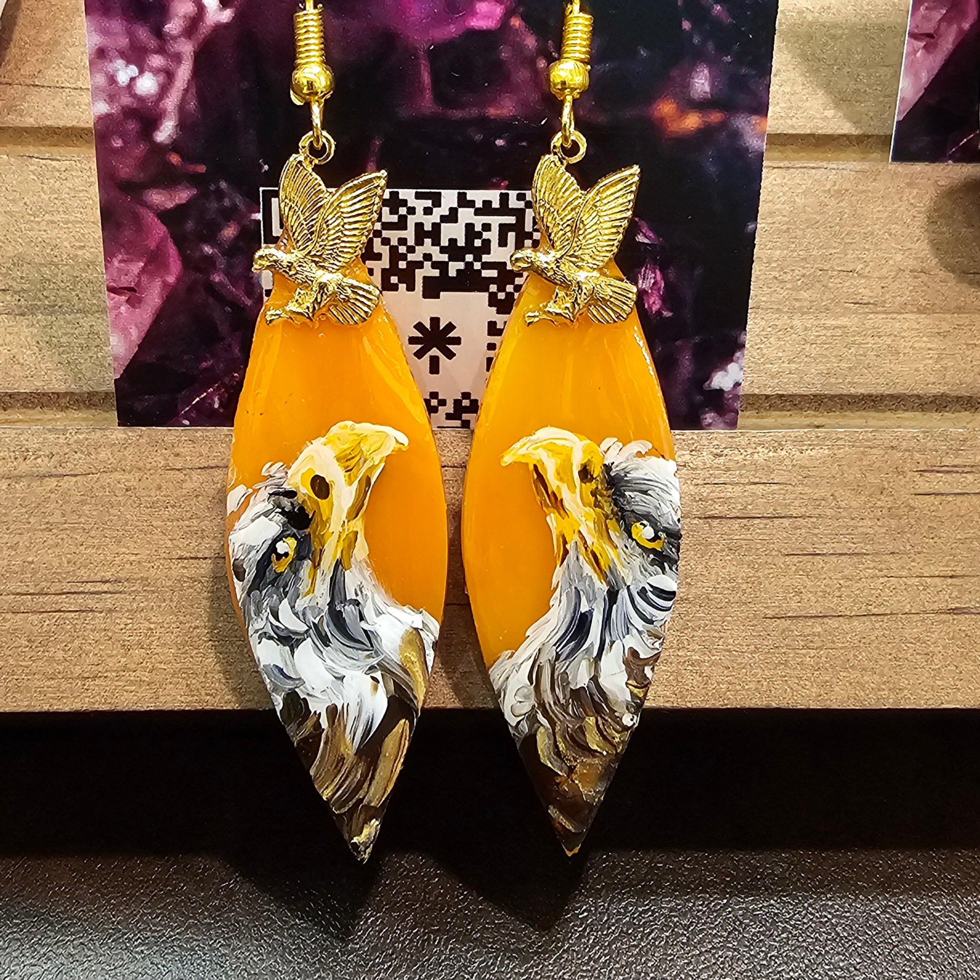 Earrings are hand painted with acrylics onto stained glass and coated with resin. The earring wires are not hypoallergenic.