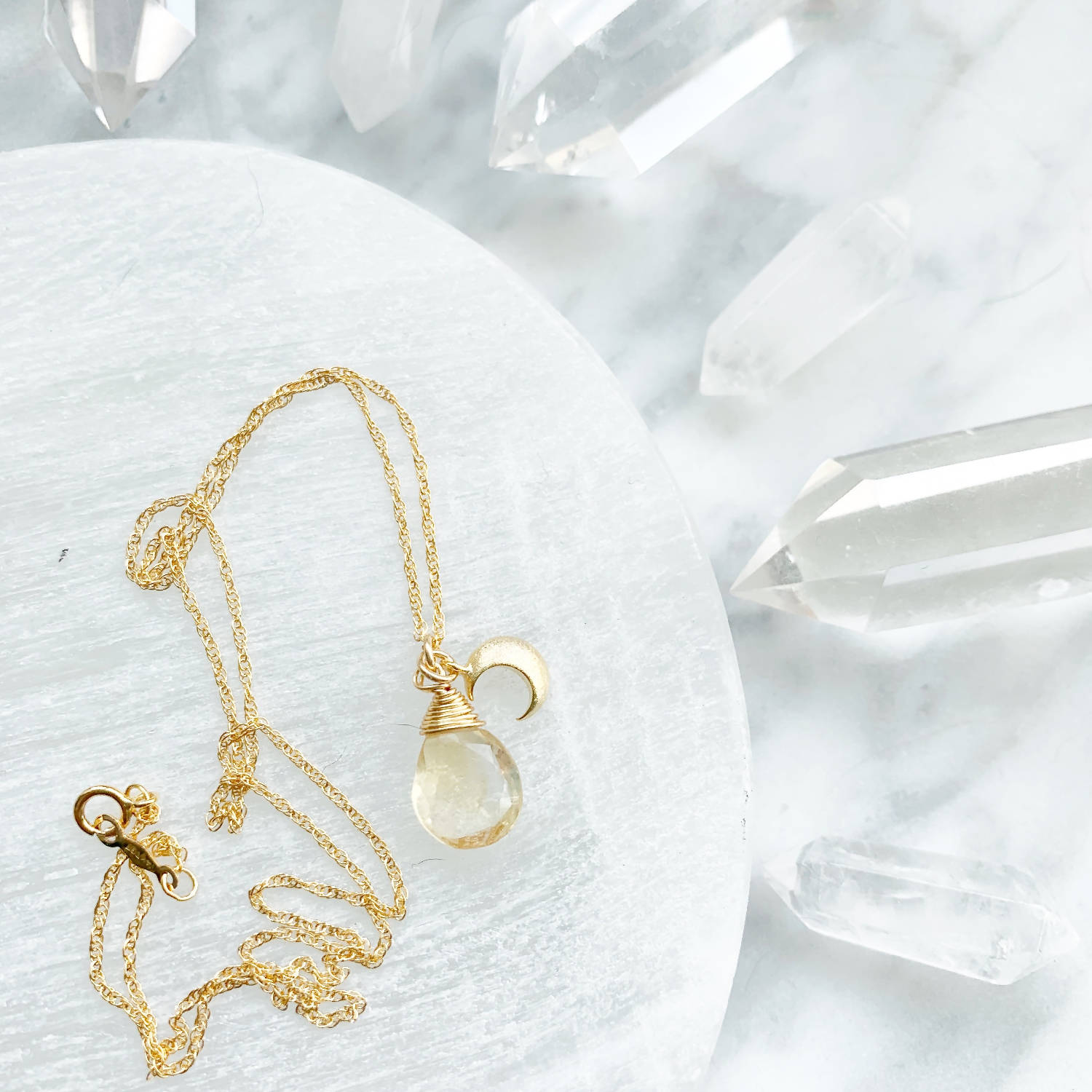 Available in a wide variety of crystals on two types of chain and in two lengths. Keep your intentions close with this versatile moon necklace.