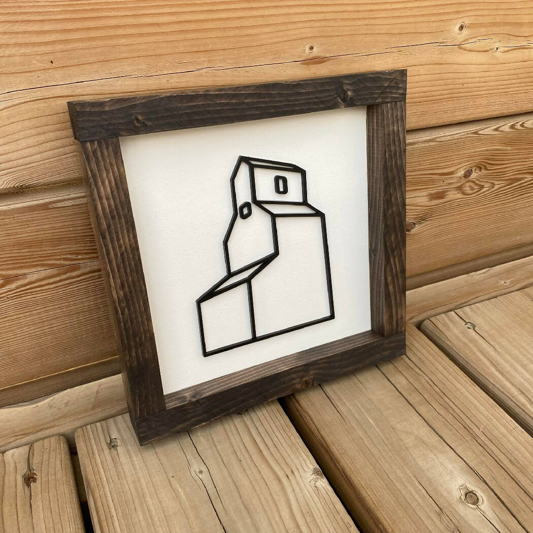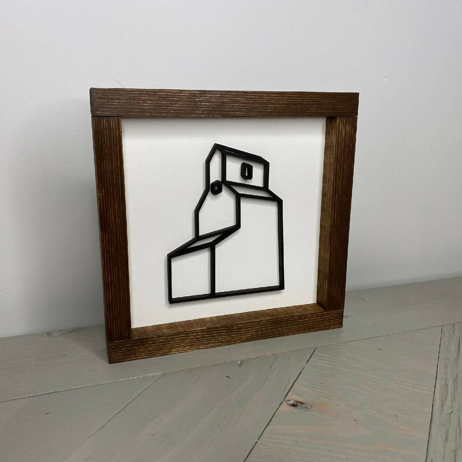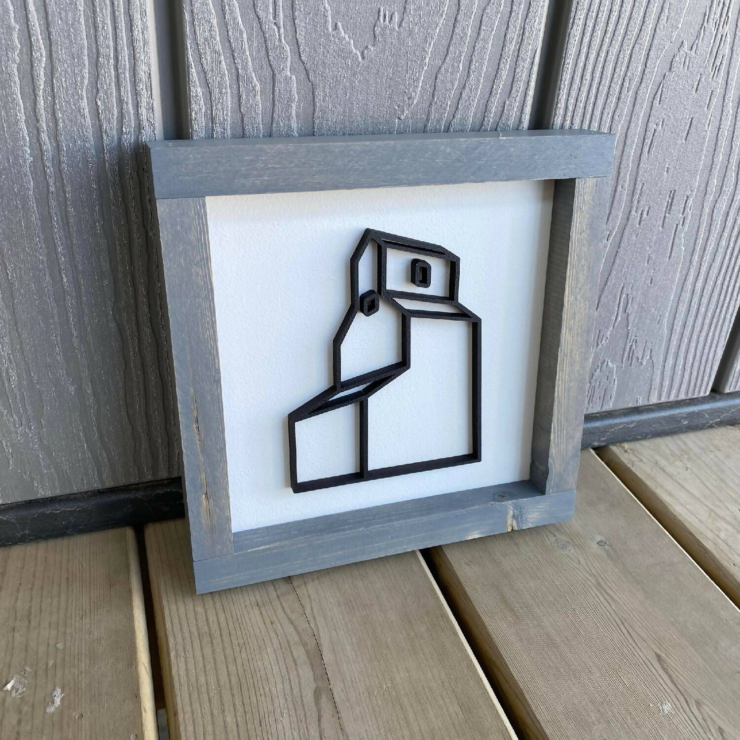 Our wood signs are made with a painted MDF backing. The backing is encased in a dado cut into the frame (ie. not stapled to the frame). We use 3/4" thick x 1-1/8" deep pine or spruce. The letters will be made from 1/8" MDF. The letters will be pre-painted, then cut on the laser machine. This means that the edges of the letters will not be painted but will have a finished laser cut edge.