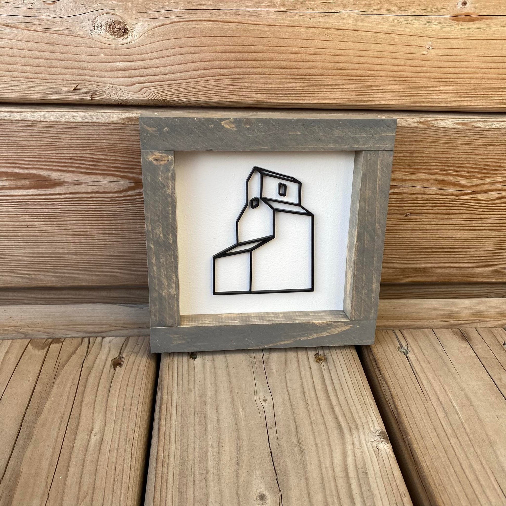 White background with black lettering. 3D lettering made from a matte black acrylic.Includes a sawtooth hanger attached to the back