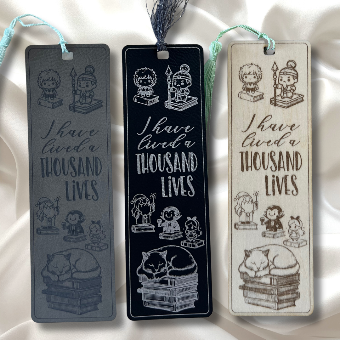 These 6" X 1.8' laser cut & engraved bookmarks are a simple and durable way to mark your place. Cleanly engraved with fine detail, perfect for everyday reading. Made with leather or 1.5mm basswood making them light and durable.