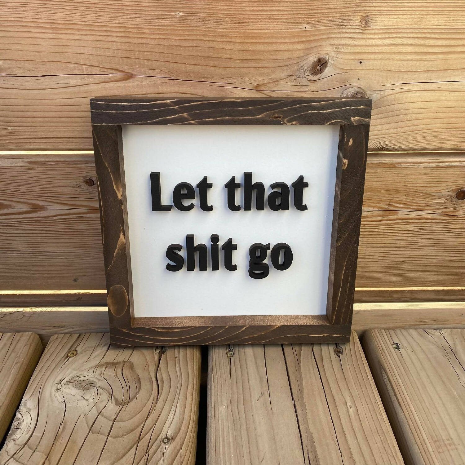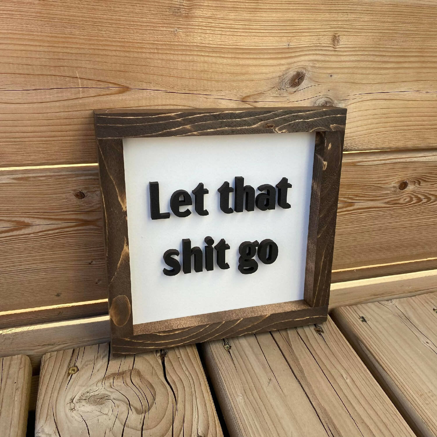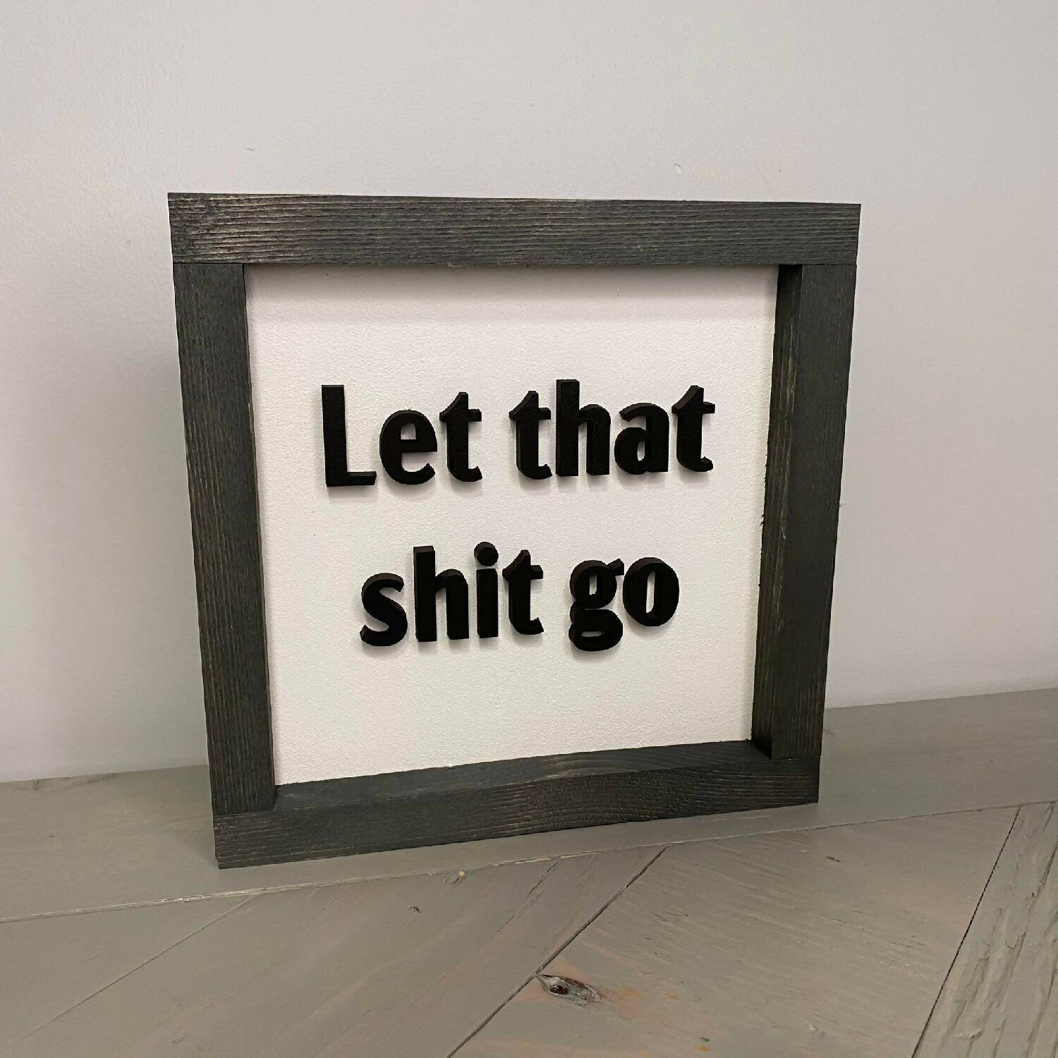 White background with black lettering. 3D lettering made from a matte black acrylic.Includes a sawtooth hanger attached to the back