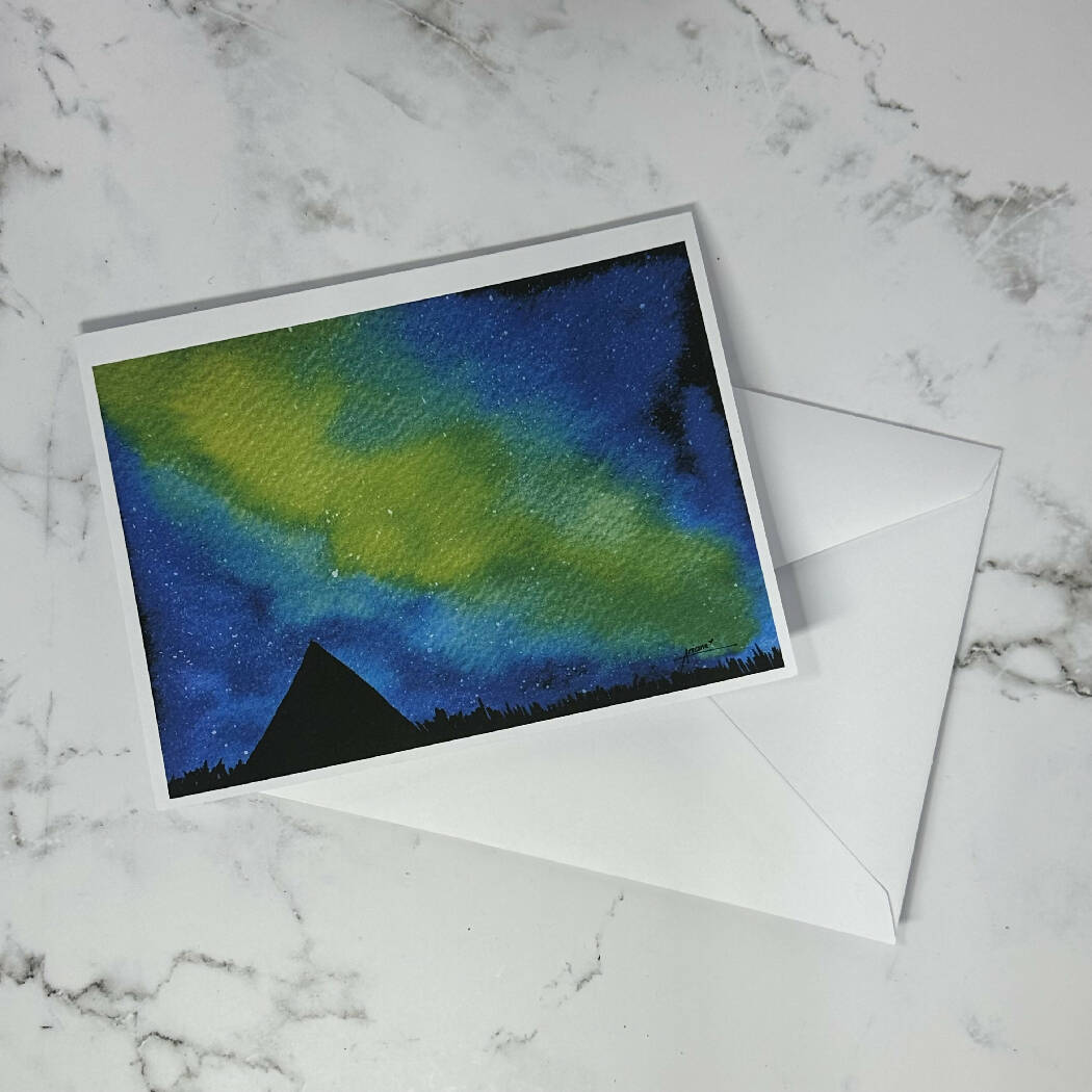 This 5" x 6.5" card features a printed art from an original watercolour painting. It is blank inside for your personal message and an envelope is included.