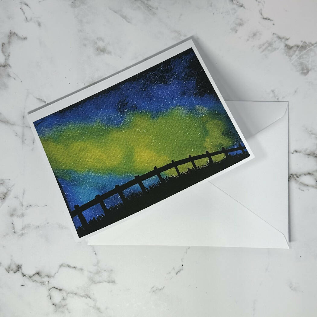 This 5" x 6.5" card features a printed art from an original watercolour painting. It is blank inside for your personal message and an envelope is included.