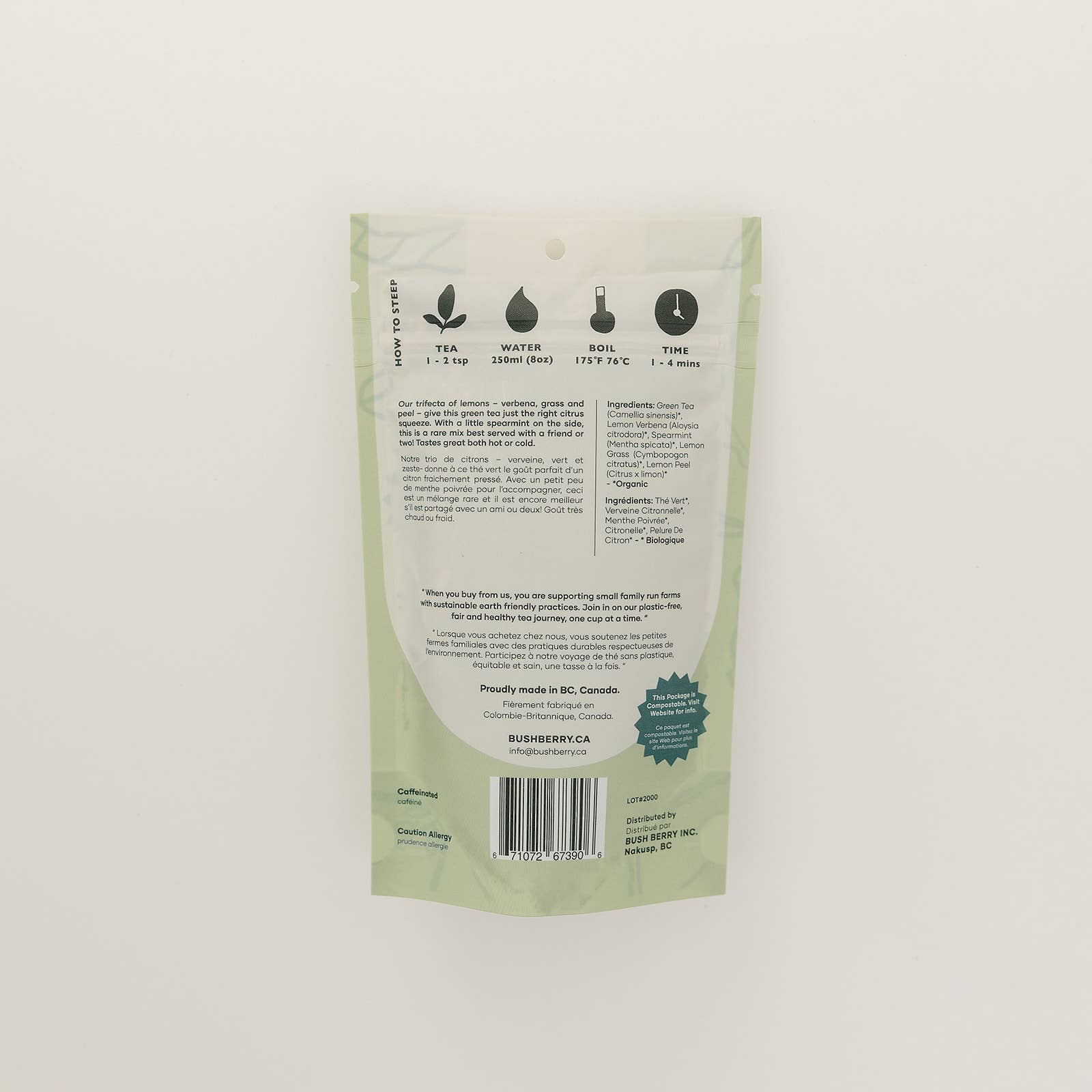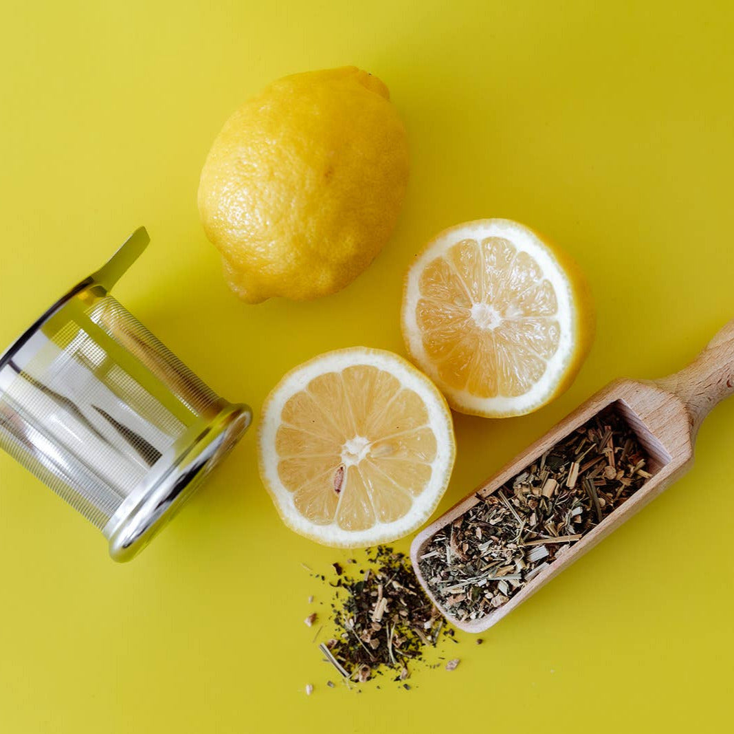 Bright, citrusy, and gently up-lifting. This blend pairs smooth green tea with zesty lemon peel and a touch of lemon peel, lemongrass and lemon verbena for a clean, refreshing cup. Lightly energizing and easy to love—perfect for a crisp start or midday boost.