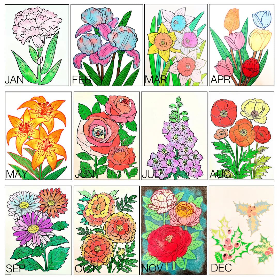 🌸 12 Coloring Sheets – A unique floral design for each month, handpicked by our creative team