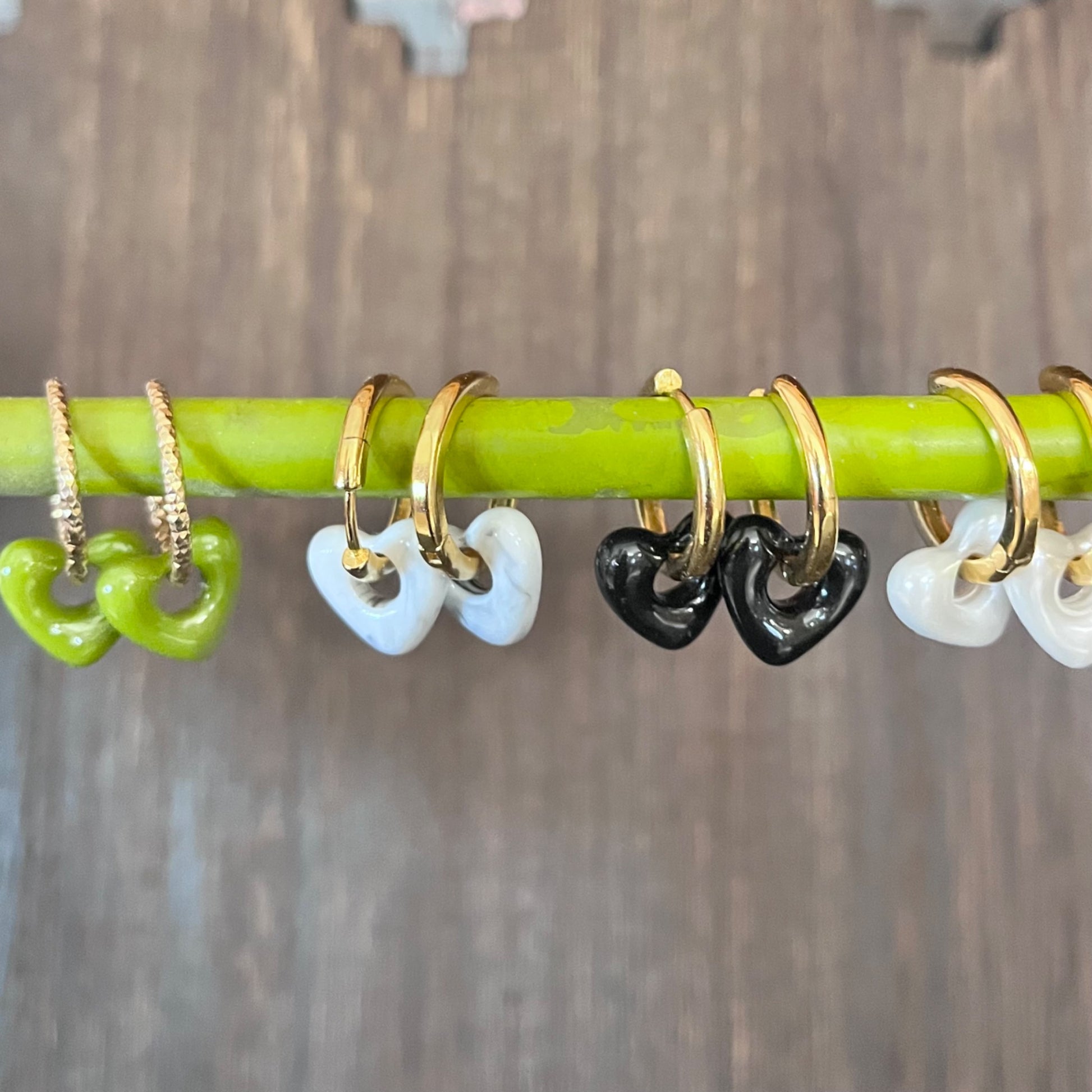 Embrace the love with our Resin Heart Hoop Earrings! Made of high quality resin, these gold plated hoops feature a charming heart design. Perfect for adding a touch of sweetness to any outfit. Show off your playful side with these quirky and stylish earrings.