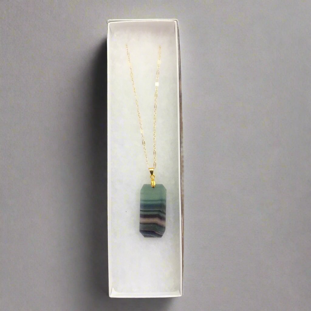 Shine bright with the Right Here Necklace! Featuring a gorgeous fluorite stone, this necklace is made with 14kt goldfill and a 30" chain for a touch of elegance. Perfect for adding a pop of color to any outfit.