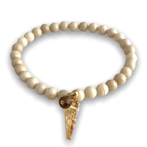 This premium bracelet features 14k Gold Filled accents, 6mm Smoky Quartz and Swarovski charm, and 6mm Riverstone gemstone beads. Indulge in the sophistication of this exclusive piece with its understated glamour and luxurious materials. Elevate your look with the beauty and elegance of the Riverstone Bracelet.