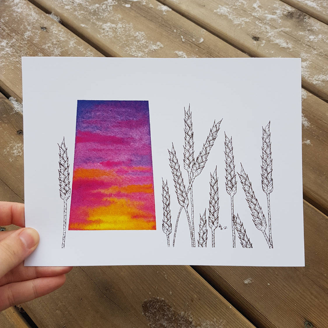 Immerse yourself in the enchanting beauty of Saskatchewan and Ukraine with a captivating collection of watercolor art prints. Each 8"x10" print features a stunning watercolor painting that beautifully intertwines the vibrant flowers of Saskatchewan and Ukraine, complemented by a Sask window design in the colors of Ukraine's flag. This unique piece not only showcases the serene landscapes but also celebrates the cultural connections between these two regions.