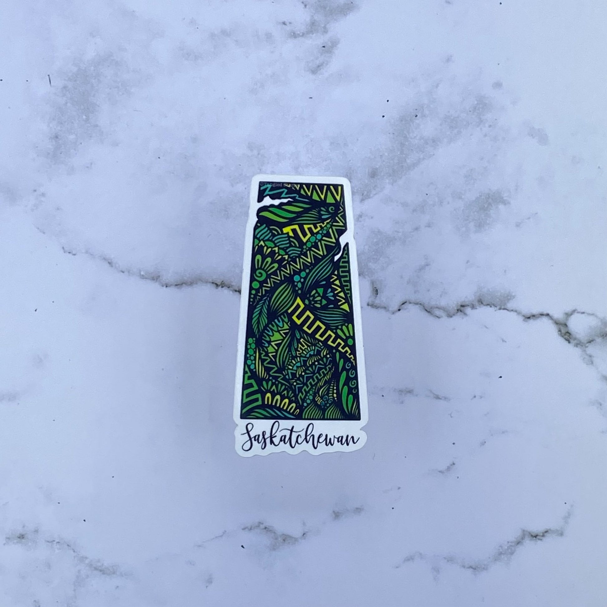 This sticker features the political boundary or provincial border of Saskatchewan map. This waterproof sticker is personally designed with Zentangle patterns and printed on glossy vinyl to perfectly personalize your water bottle, car, gadgets, luggages, and more.