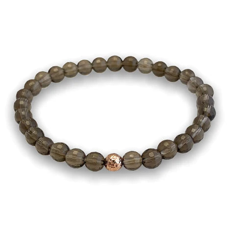 From the shimmering 6mm rose gold bead to the captivating 6mm smoky quartz gemstone beads, our bracelet exudes elegance and luxury. Embrace sophistication and elevate any look with this stretch bracelet. A must-have for the modern and refined woman.