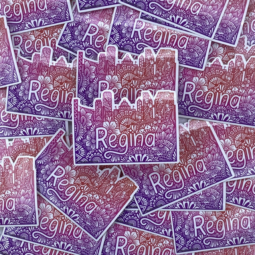 Tangled Regina Skyline (Pink/Purple) Weatherproof Sticker