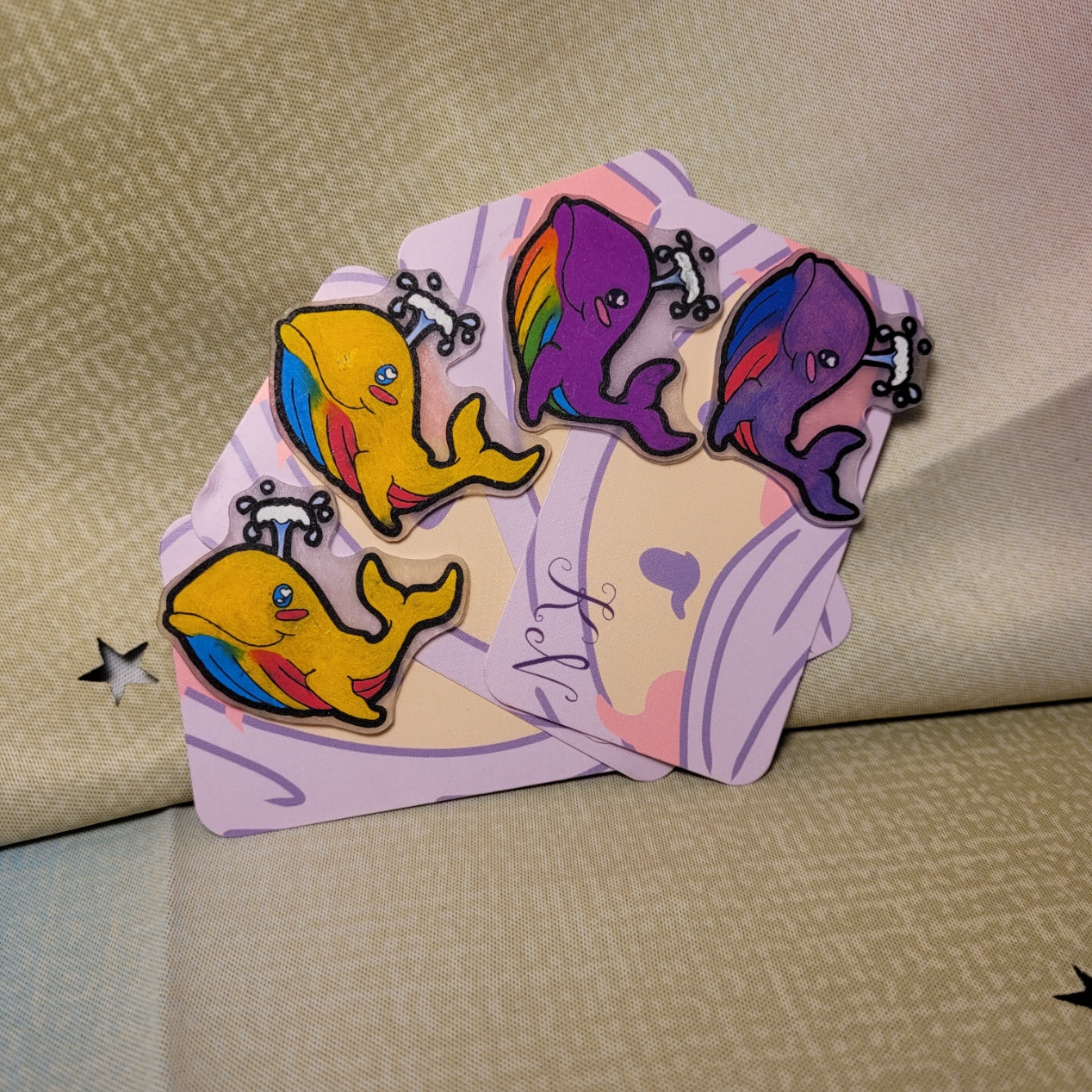Made from clear shrink plastic, colored with pencil crayons & alcohol markers and sealed with a UV resistant matte spray.