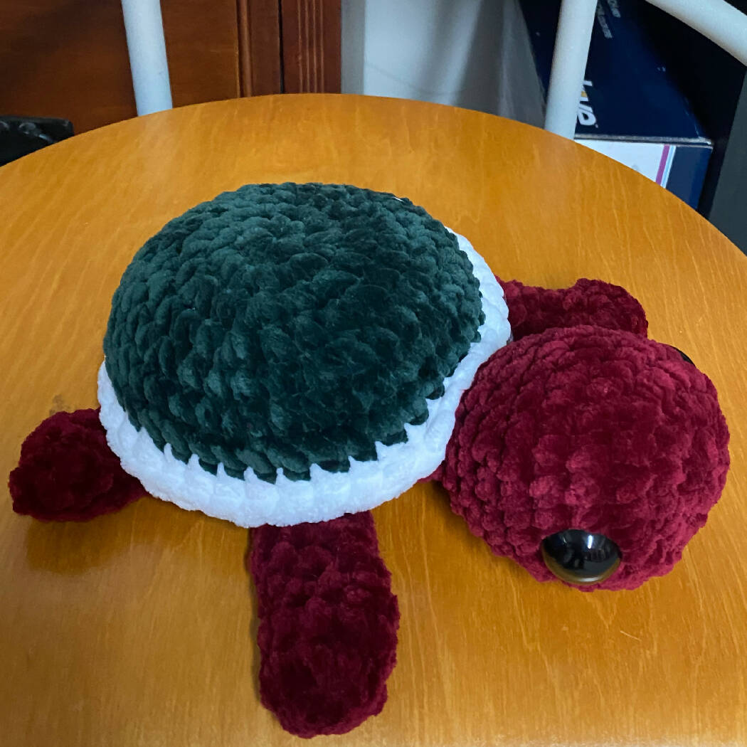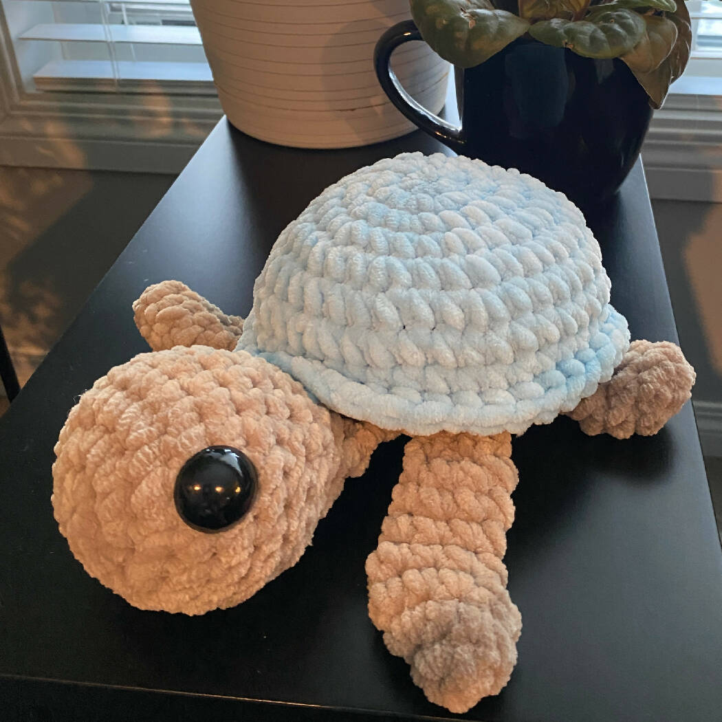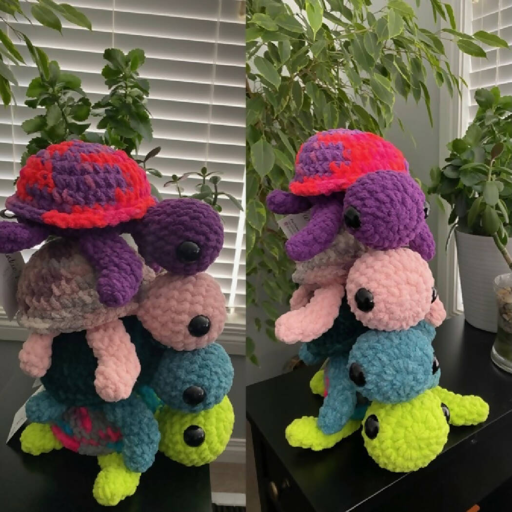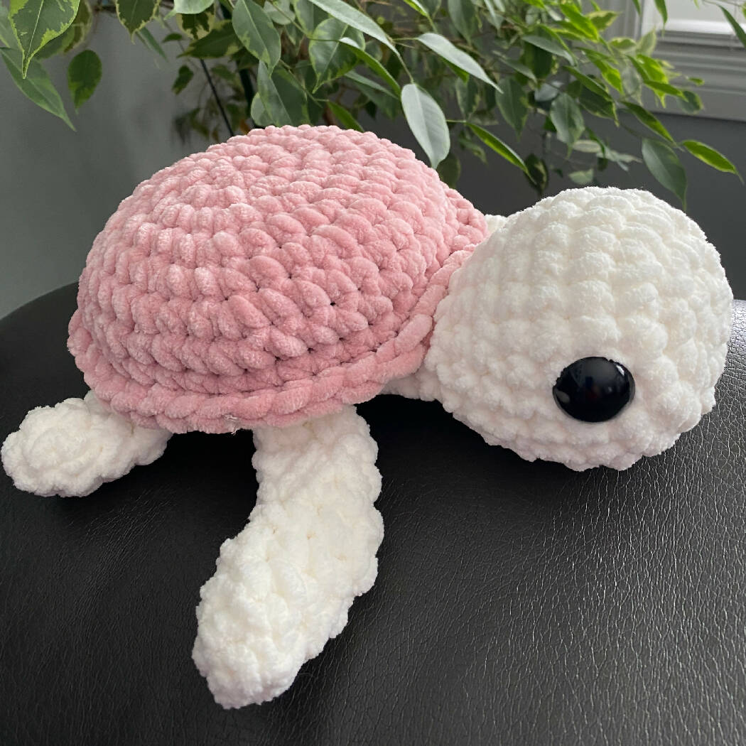 This little turtle is perfect for snuggles. Not recommended for children under the age of three, however it can be made with embroidered eyes.