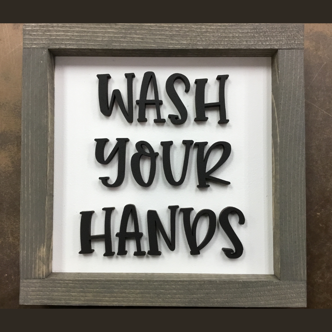 White background with black lettering. 3D lettering made from a matte black acrylic.Includes a sawtooth hanger attached to the back