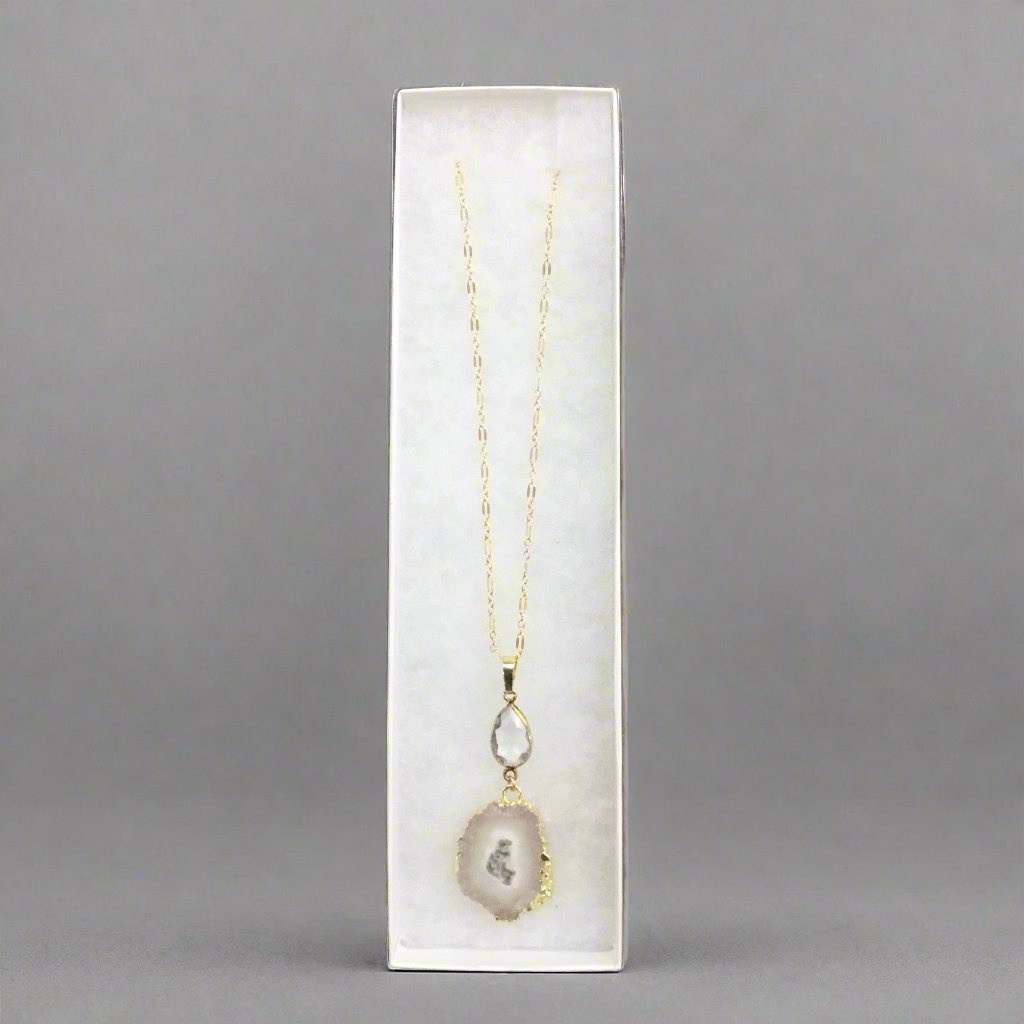 Unleash your unique style with our Weird & Wonderful Necklace! Made with 14kt goldfill and featuring a stunning geode pendant on a 30" chain. Bring some quirky charm to any outfit with this one-of-a-kind piece.