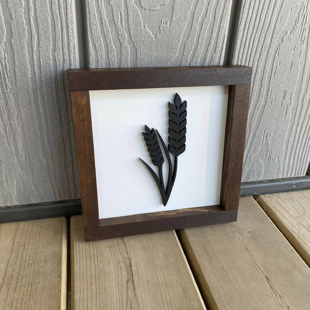 Our wood signs are made with a painted MDF backing. The backing is encased in a dado cut into the frame (ie. not stapled to the frame). We use 3/4" thick x 1-1/8" deep pine or spruce. The letters will be made from 1/8" MDF. The letters will be pre-painted, then cut on the laser machine. This means that the edges of the letters will not be painted but will have a finished laser cut edge.