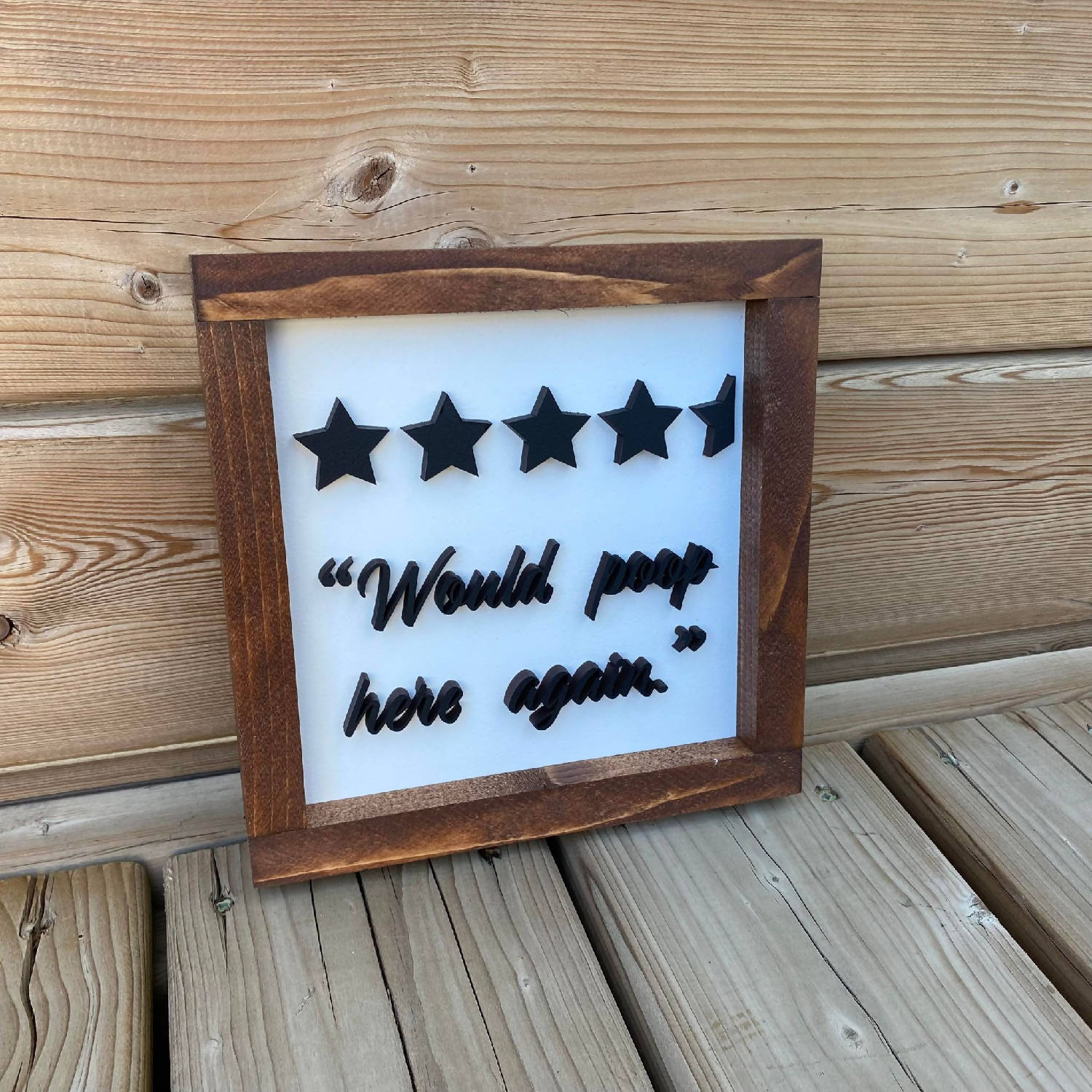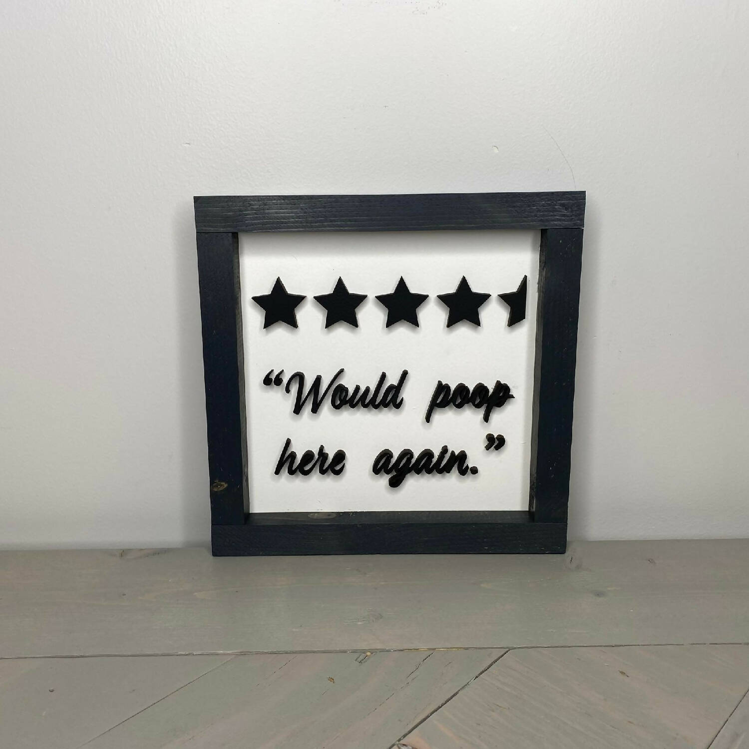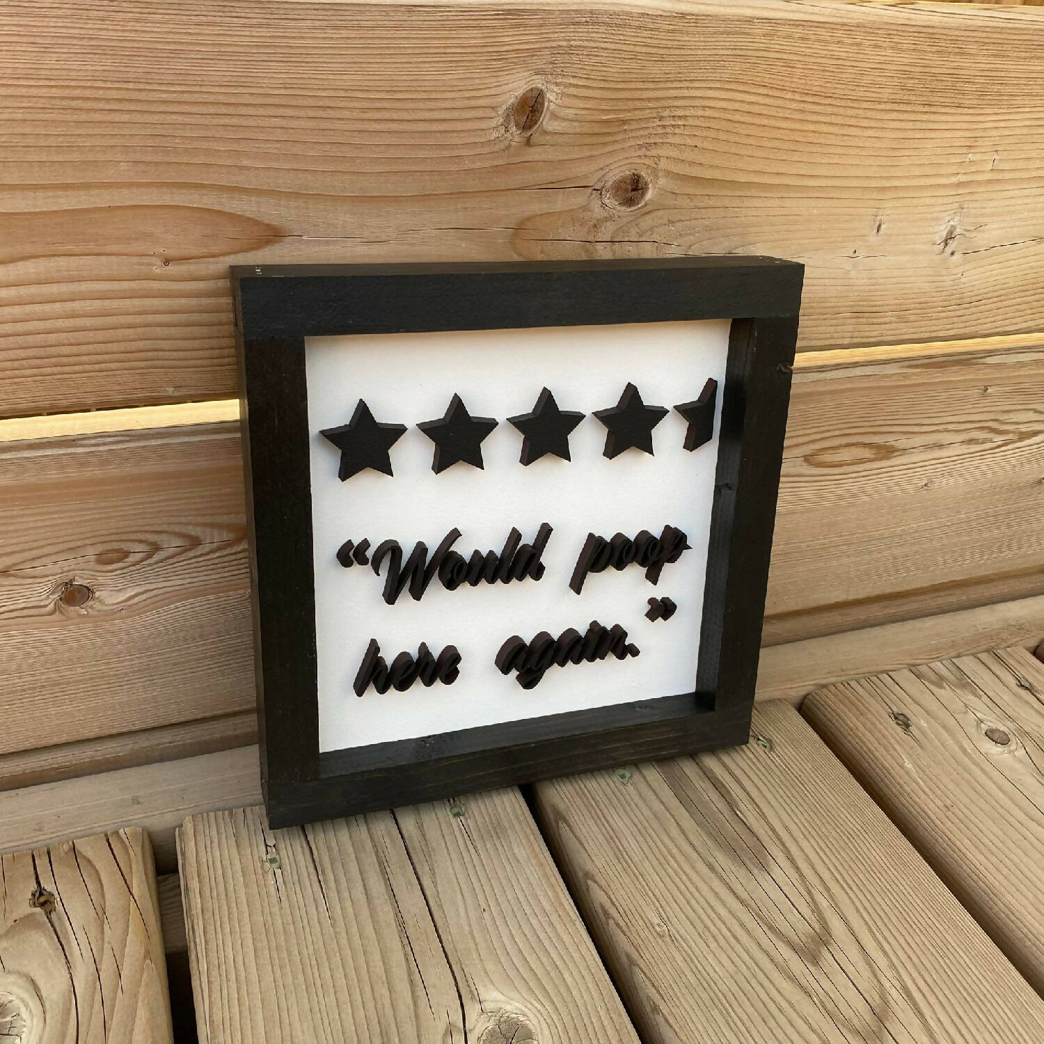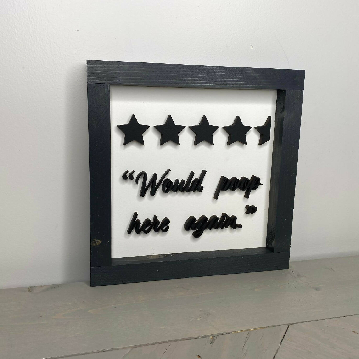 White background with black lettering. 3D lettering made from a matte black acrylic.Includes a sawtooth hanger attached to the back