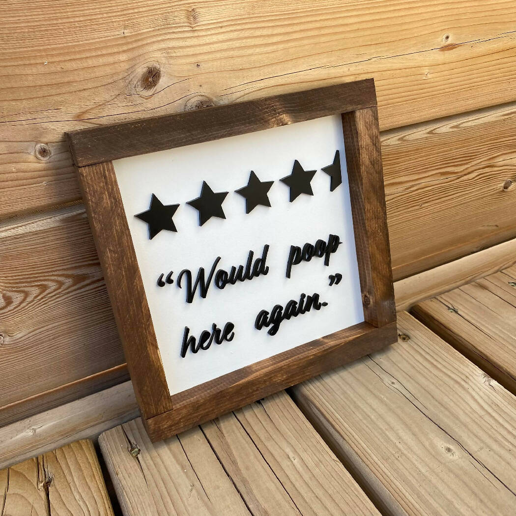 Our wood signs are made with a painted MDF backing. The backing is encased in a dado cut into the frame (ie. not stapled to the frame). We use 3/4" thick x 1-1/8" deep pine or spruce. The letters will be made from 1/8" matte black acrylic.
